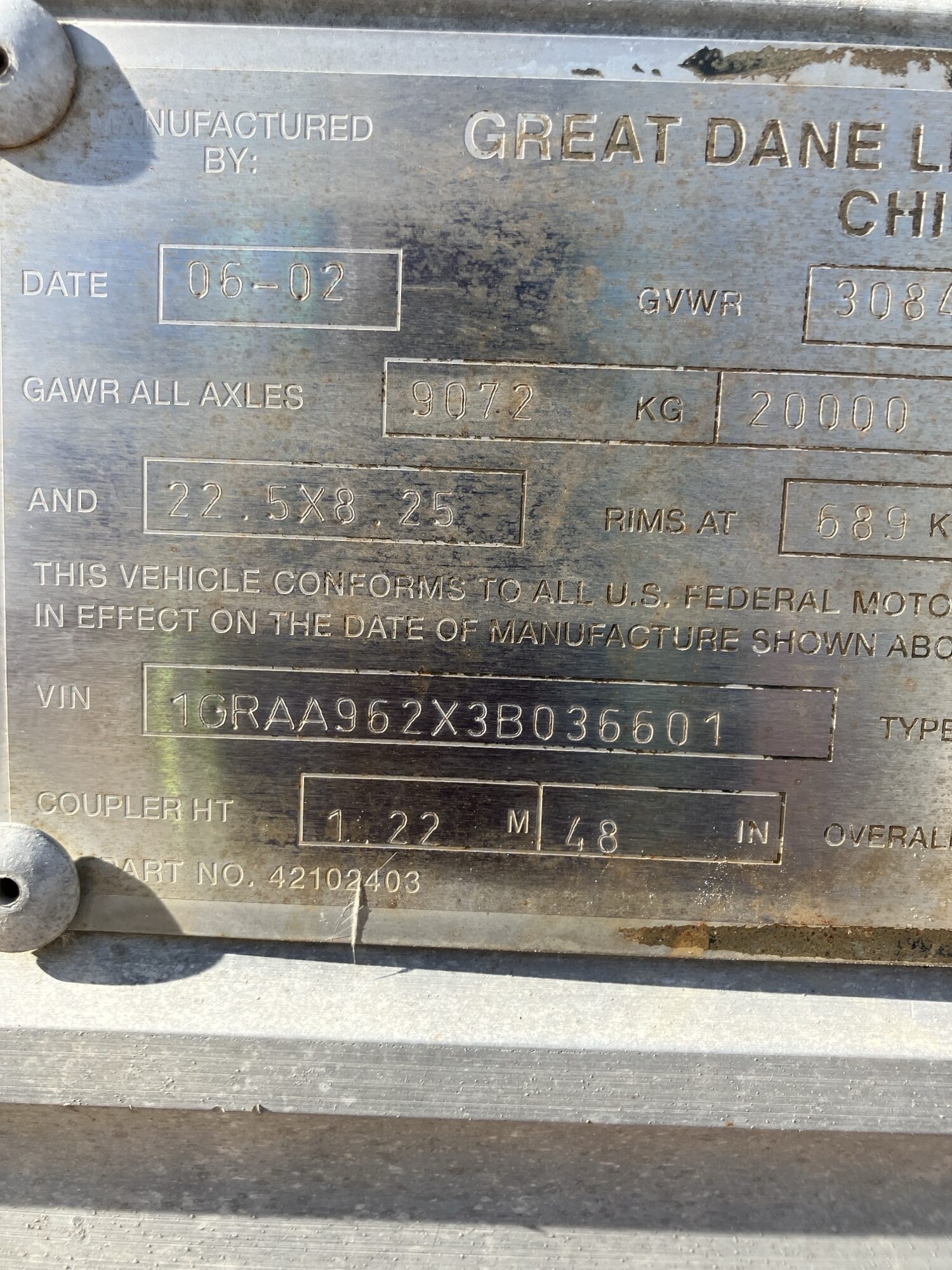 TRAILER DETAILS: 2006 Great Dane Van Trailer • VIN #:1GRAA96216B701972 • Condition: Used 2003 Great Dane Van Trailer • VIN #:1GRAA962X3B036601 • Condition: Used WATER BUGGY DETAILS: • Ardco Water Buggy with 1000 Gal